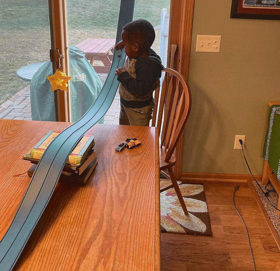 Discover Super Circuit®, the unique flexible race track. 4 meters long (13.12 feet), easy to use both indoors and outdoors, it lets you create endless track designs using everyday objects (cars not included).