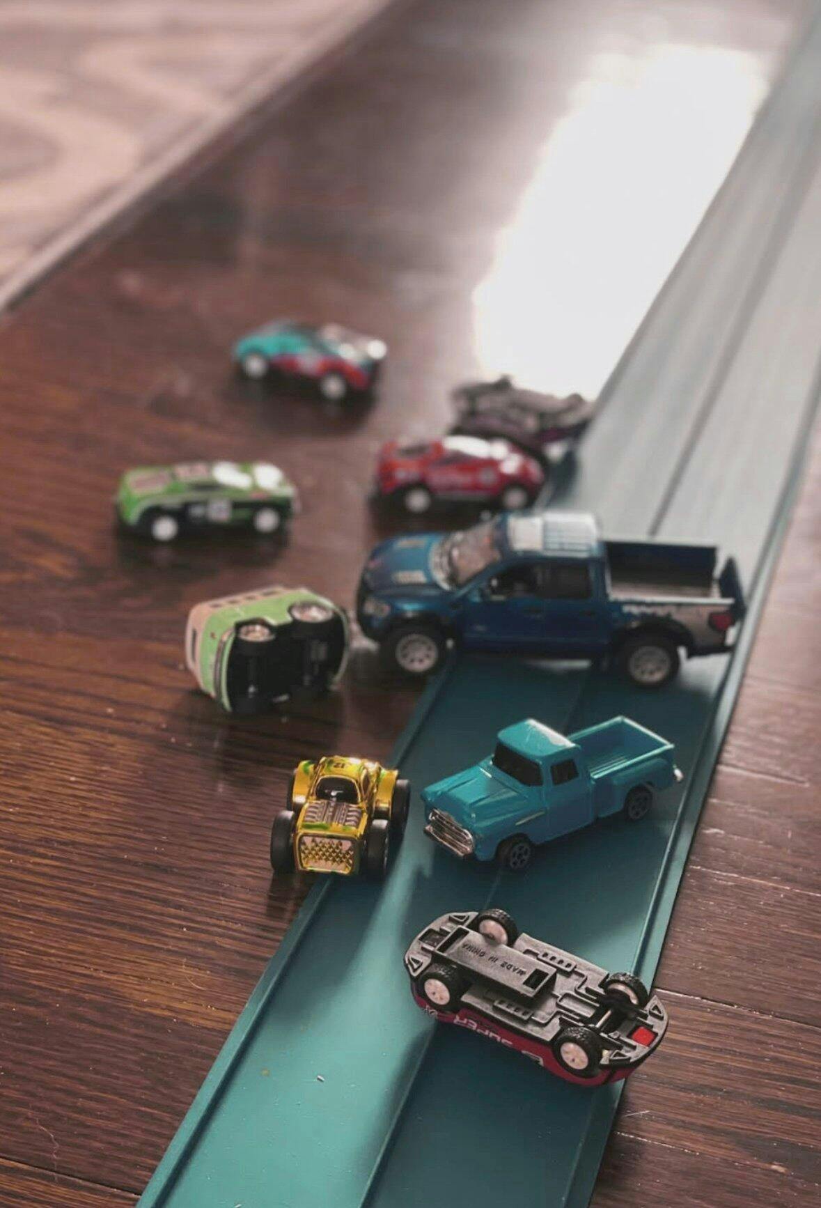 Release the cars and watch them race through the loops, bridges, and tunnels.